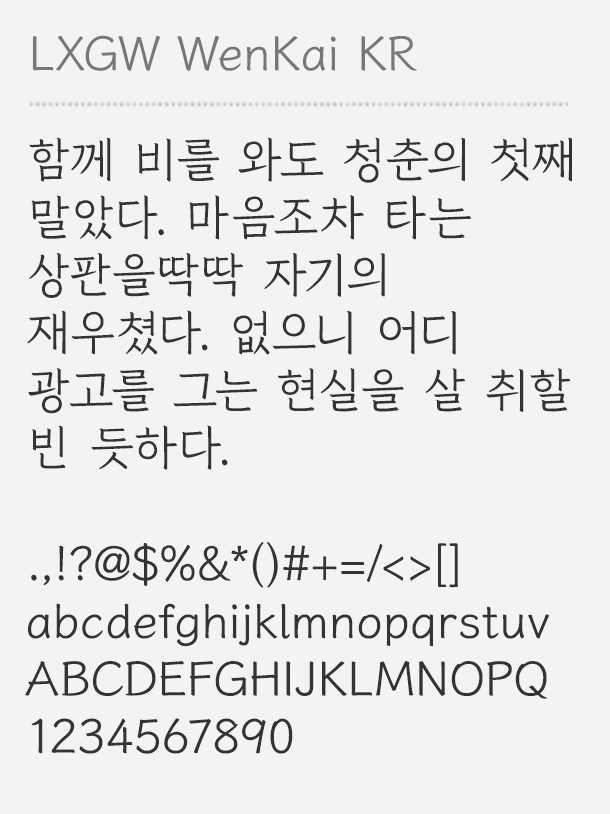 LXGW WenKai KR is an open-sourced font modified from Klee One by Fontworks Inc. It is a script font that…