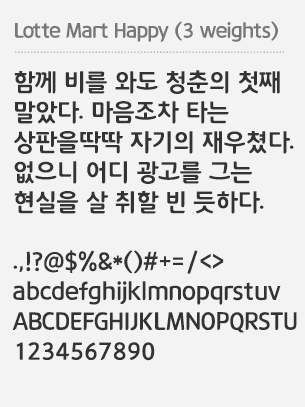 LotteMart Happiness font is the official corporate font that you can download for free. It comes with 3 weights, and…